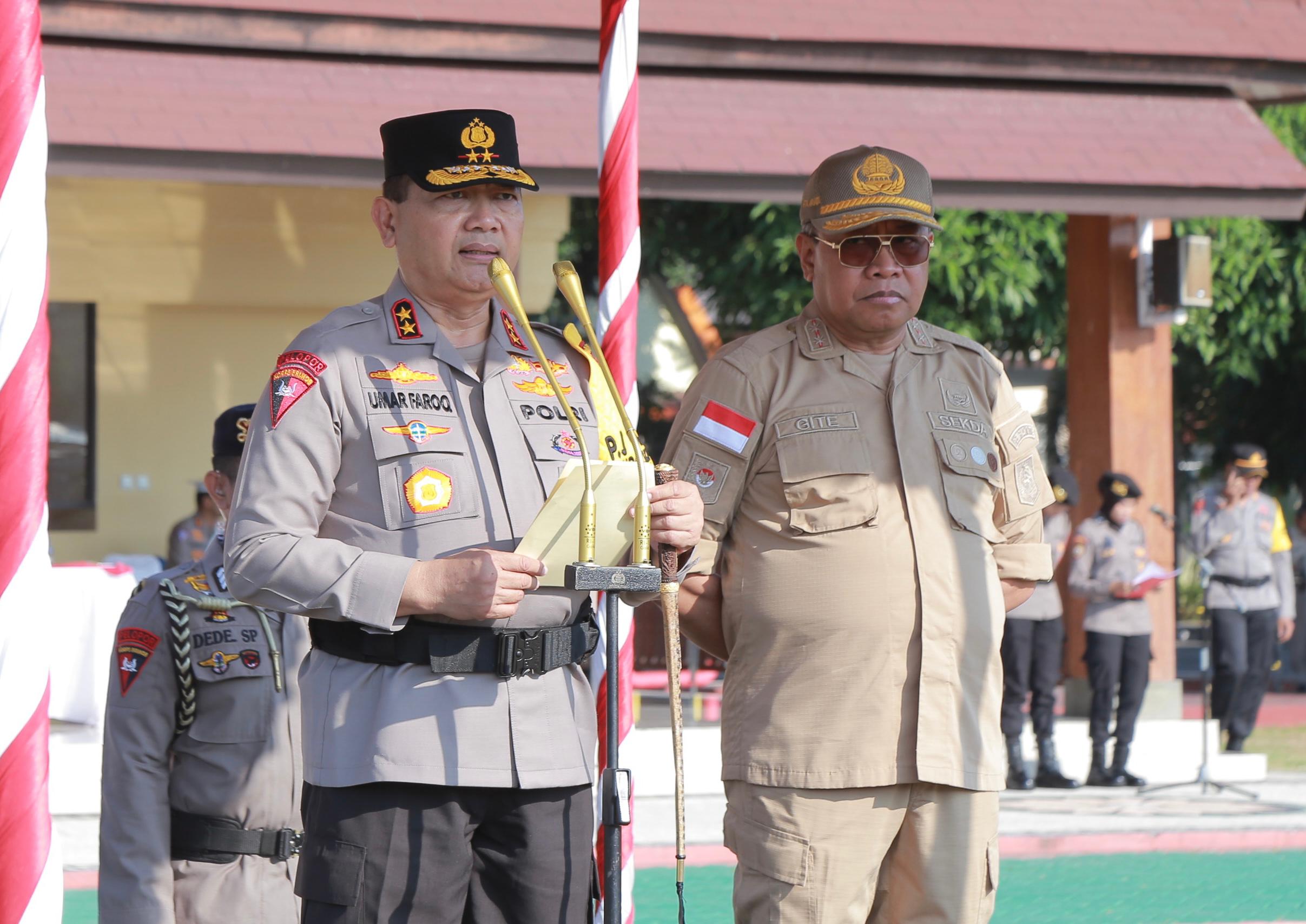 Mataram NTB – Kapolda NTB Irjen Pol. R. Umar Faruq SH., M.Hum., memimpin Apel gelar pasukan Operasi Mandalika Gatari 2024 dalam rangka Pengamanan Event MotoGP Mandalika, Selasa (24/09/2024).