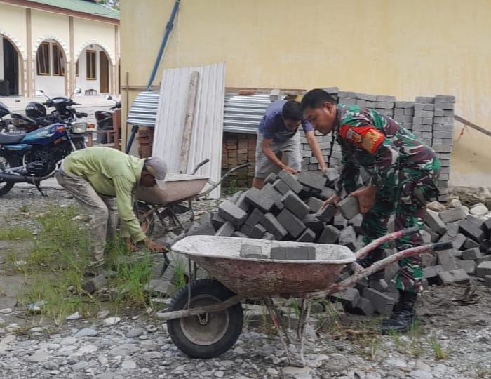 KODIM POSO || Serda Wahyudin, anggota Koramil 1307-09/Poso Pesisir, melaksanakan kegiatan kerja bakti bersama masyarakat di RT 3, Kelurahan Tabalu, Kecamatan Poso Pesisir, Kabupaten Poso. Jumat, (25/10/2024).