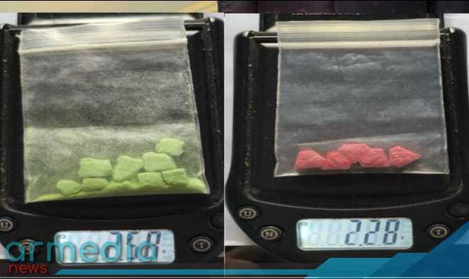 - 1 bungkus plastik klip bening berisi 5 butir pil merah berbentuk segi lima berlogo “S” (berat bruto 2,28 gram)