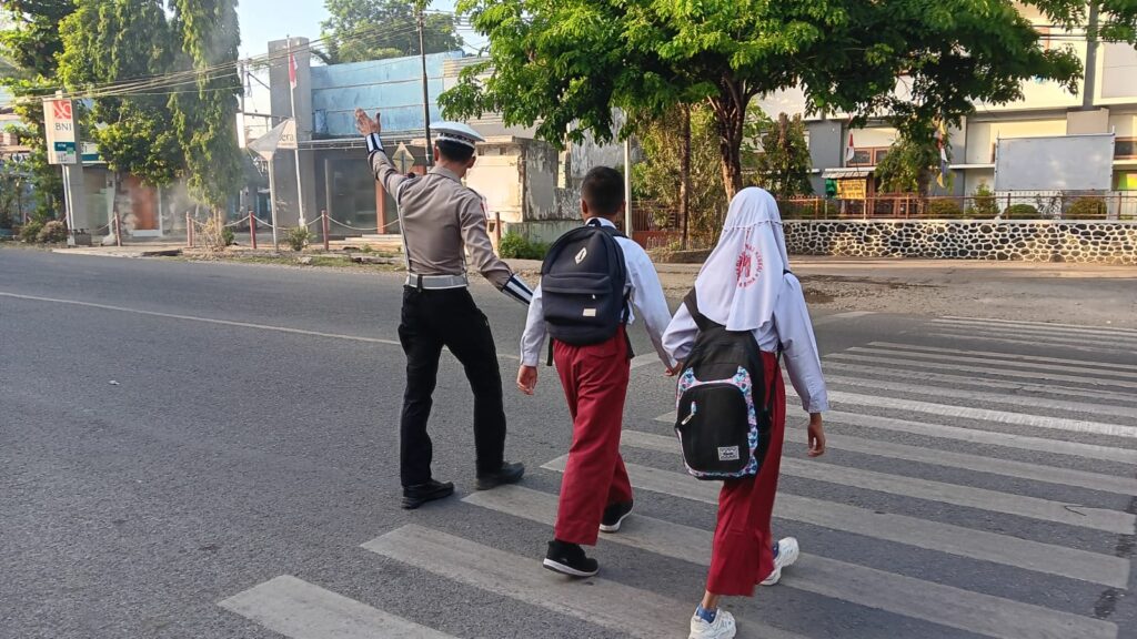 Armedia.news | Kota Bima, NTB (01/10) – Satuan Lalu Lintas (Sat Lantas) Polres Bima Kota Polda NTB melaksanakan pengaturan lalu lintas pagi (gatur) di sejumlah titik strategis, seperti perempatan jalan, simpul-simpul lalu lintas, depan sekolah, serta kawasan yang rawan kemacetan dan kecelakaan lalu lintas, pada Selasa (01/10/2024).