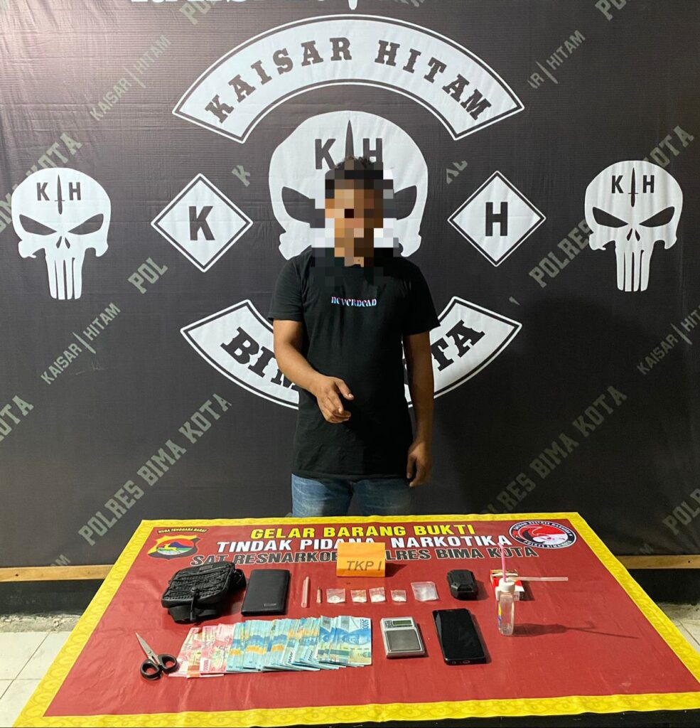 Kota Bima, NTB (12/10) – Armedia.news Tim Kaisar Hitam Polres Bima Kota di bawah pimpinan Katim Aiptu Abdul Hafid kembali menunjukkan komitmen kuatnya dalam memberantas peredaran narkoba di wilayah hukum mereka. Kali ini, seorang pria yang diduga sebagai pengedar narkoba jenis sabu di Kelurahan Tanjung, Kecamatan Rasanae Barat, Kota Bima, berhasil diringkus.