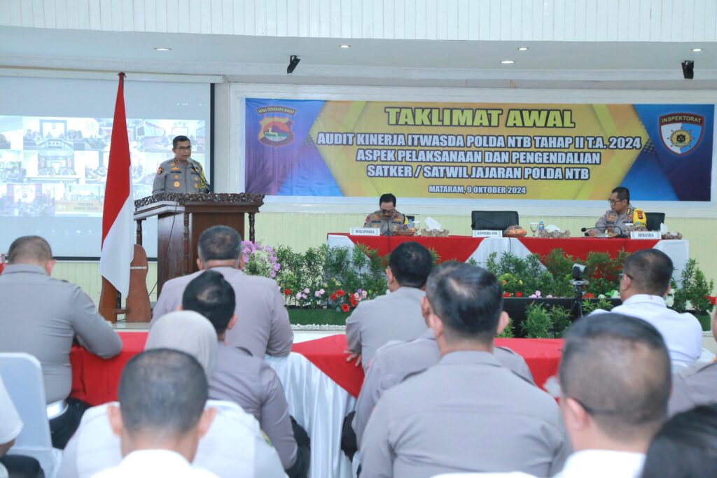 Mataram NTB – ARMEDIA.news ll Kapolda NTB Irjen Pol. Hadi Gunawan SH.,SIK., membuka secara resmi Taklimat Awal Audit Kinerja Itwasda Polda NTB tahap II Tahun Anggaran 2024 terkait Aspek pelaksanaan dan pengendalian Satker / Satwil Jajaran Polda NTB di Gedung Rupatama Polda NTB, Rabu (09/10/2024).