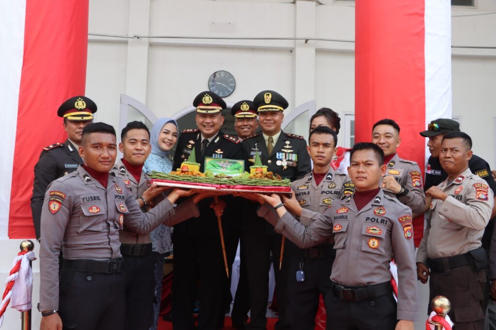 Armedia.news | Kota Bima, NTB (05 Oktober 2024) – Dalam rangka memperingati Hari Ulang Tahun (HUT) TNI ke-79, Kapolres Bima Kota AKBP Yudha Pranata, S.I.K., S.H., bersama jajaran Polres Bima Kota memberikan kejutan berupa tumpeng dan kue kepada Kodim 1608/Bima, Sabtu (05/10/24). Kejutan ini menjadi simbol kekompakan dan sinergi yang kuat antara TNI dan Polri di wilayah Bima Kota.