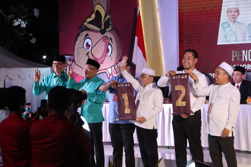 Maka dari itu Kapolres berharap kerjasama dan kolaborasi kita dalam melaksanakan pengamanan sehingga kegiatan ini dapat terlaksana dengan aman tertib dan lancar. Dan hasil pengambilan nomor urut Calon yakni Pasangan Najmul- Kusmalahadi mendapat Nomor urut 1, Pasangan Dani-Zaki mendapat Nomor urut 2 dan Pasangan Muksin- Junaidi mendapat nomor Urut 3. Dan kegiatan pengambilan nomor urut dapat berjalan dengan aman.