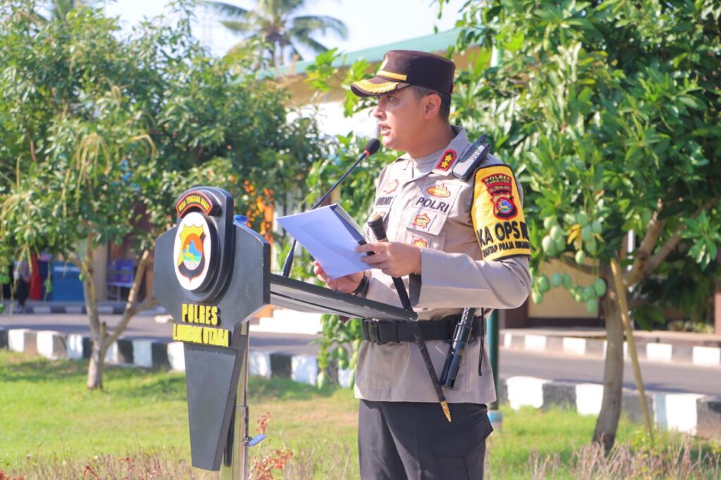 Apel tersebut dipimpin oleh Kapolres Lombok Utara, AKBP Didik Putra Kuncoro, S.I.K., M.Si., dan dihadiri oleh Dandim 1606 Mataram, Wakapolres Lombok Utara, para pejabat utama, perwira, seluruh personil Polres dari berbagai satuan fungsi, serta ASN.