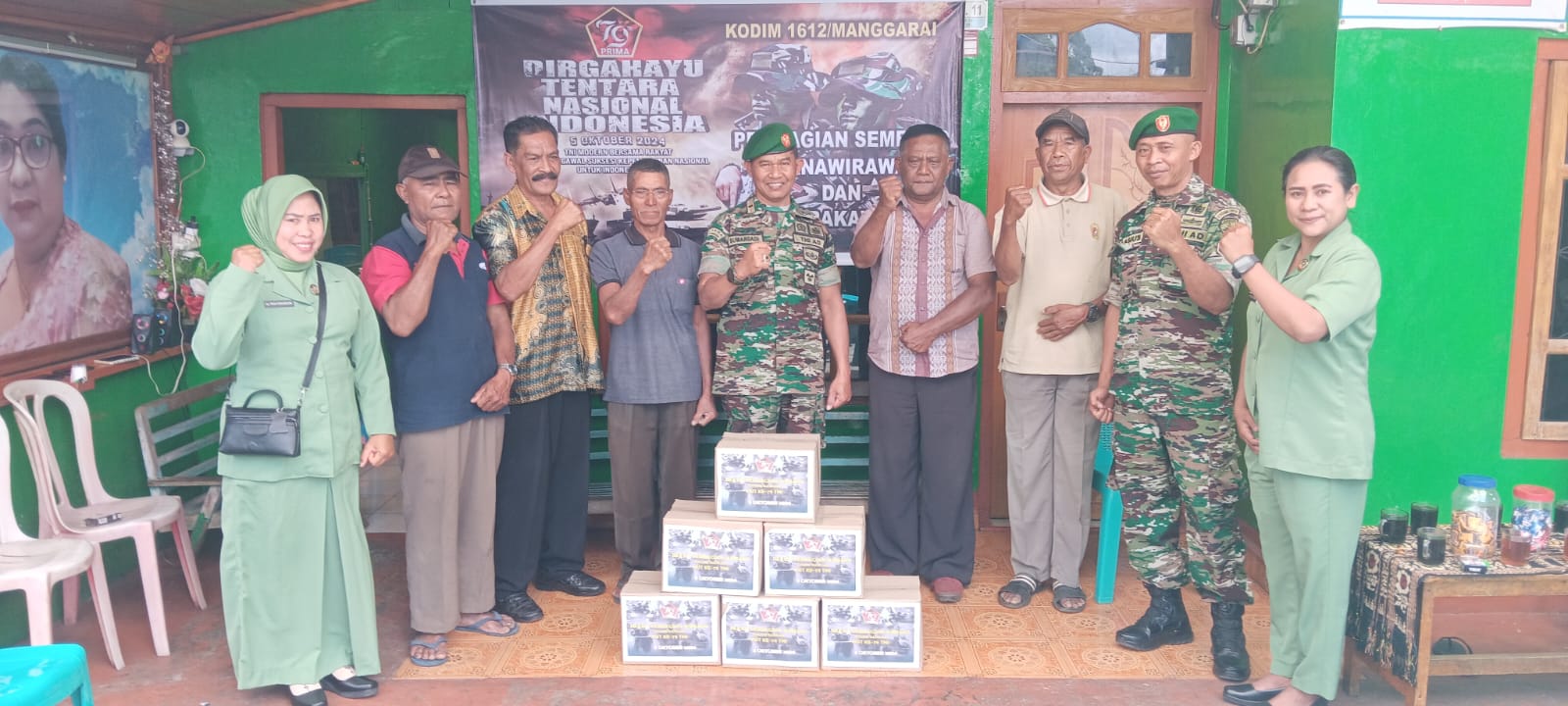 Dalam rangka memperingati Hari Ulang Tahun (HUT) TNI ke-79, Kodim 1612/Manggarai menggelar kegiatan sosial yang penuh makna dengan membagikan bingkisan sembako kepada purnawirawan dan PNS TNI. Acara berlangsung di Dusun Pocomal, Kelurahan Pocomal, Kecamatan Langke Rembong pada 22 Oktober 2024.