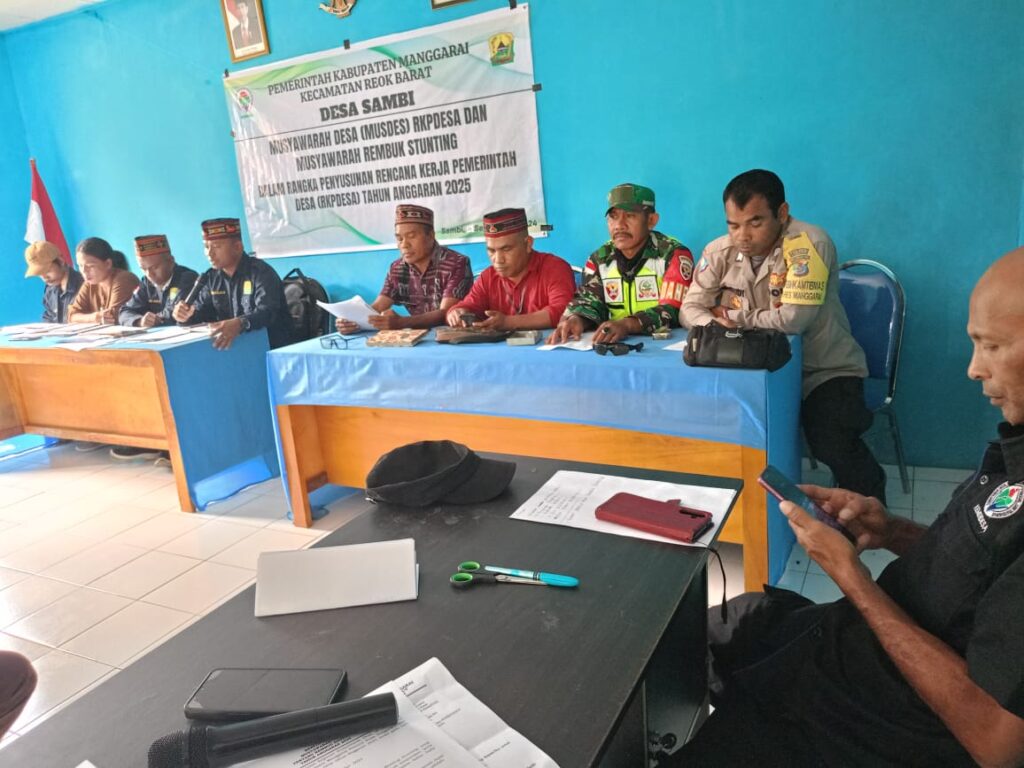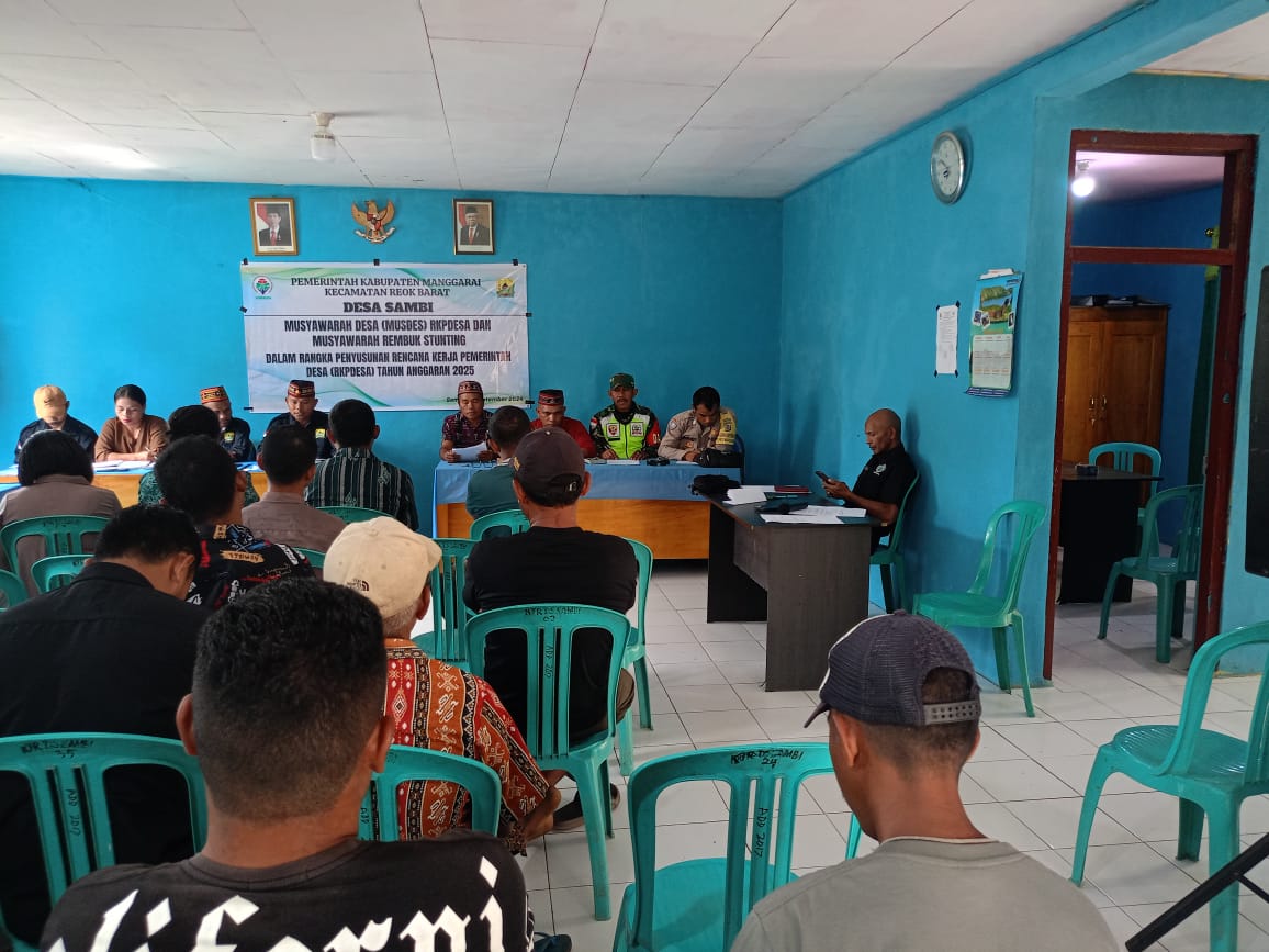 Reok, 21 September 2024 – MUSDES RKP-DES dan Rembug Stunting Tahun Anggaran 2025 menjadi momen penting bagi masyarakat Desa Sambi dan sekitarnya. Diadakan di Kantor Desa Sambi, acara ini dihadiri oleh Babinsa Koramil 1612-03/Reok, Serka Jalaludin, yang berperan aktif dalam mendukung program kesehatan anak. Acara ini dihadiri oleh berbagai pemangku kepentingan, termasuk Camat Reok Barat yang diwakili oleh Kasi Pem, serta kepala desa, ketua TP PKK, dan para kepala Puskesmas.