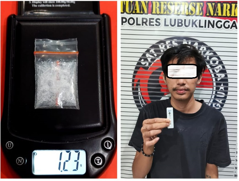 Saat dilakukan penggeledahan, petugas menemukan barang bukti berupa satu plastik klip berisi kristal putih yang diduga narkotika golongan I jenis sabu dengan berat kotor 1,23 gram. Barang bukti tersebut ditemukan di dalam kantong celana sebelah kiri bagian depan tersangka.