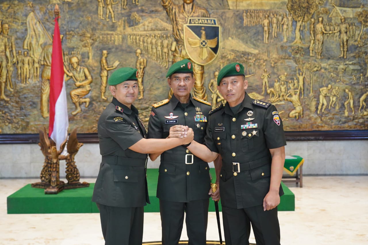 Armedia.news | Denpasar- Pangdam IX/Udayana Mayjen TNI Muhammad Zamroni, S.IP., M.Si., memimpin Acara Serah Terima Jabatan (Sertijab) dan Tradisi Laporan Korps Komandan Resimen Induk Komando Daerah Militer (Danrindam) IX/Udayana dari Kolonel Inf Wirawan Eko Prasetyo, S.E. kepada Kolonel Inf Didit Hari Prasetyo Putro, S.I.P. M.I.P., yang digelar di Hall Makodam IX/Udayana, Denpasar, pada Rabu (9/10/2024).