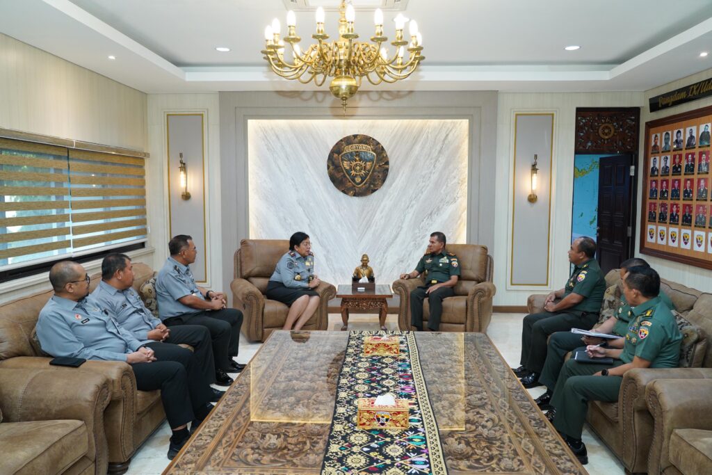 Denpasar – ARMEDIA.news ll Pangdam IX/Udayana, Mayjen TNI Muhammad Zamroni, S.I.P., M.Si., menerima kunjungan silaturahmi dari rombongan Kementerian Hukum dan Hak Asasi Manusia (Kemenkumham) Provinsi Bali yang dipimpin oleh Kepala Kantor Wilayah, Ibu Pramella Yunidar Pasaribu, S.H., M.Hum. Pertemuan ini berlangsung di Ruang Tamu Pangdam, Makodam, Denpasar, pada Senin (14/10/2024).