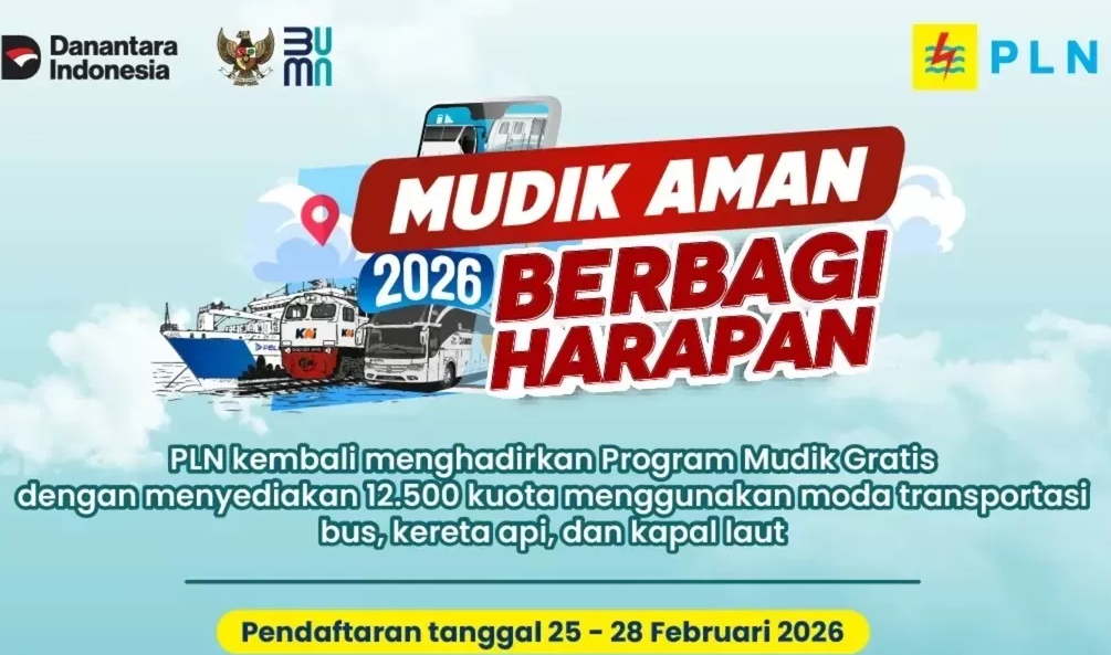 armedia.news | Jakarta – Pendaftaran Mudik Gratis 2026 bersama PLN dibuka mulai 25 hingga 28 Februari 2026 dan dapat diikuti masyarakat melalui aplikasi PLN Mobile. Program ini menyediakan 12.500 kuota perjalanan menggunakan moda bus, kereta api, dan kapal laut untuk membantu masyarakat pulang kampung dengan aman dan nyaman menjelang Lebaran.