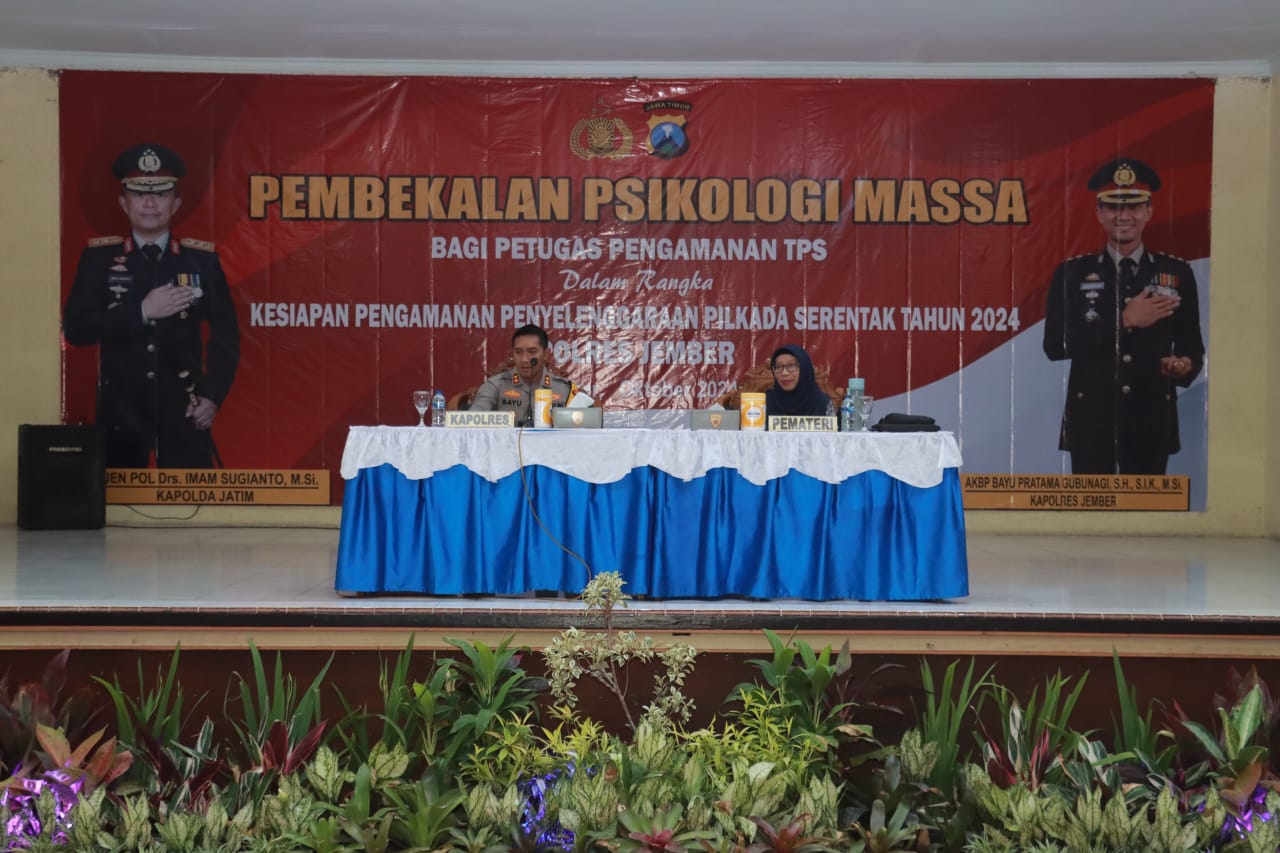 JEMBER – Armedia.news || Dalam rangka mempersiapkan pengamanan Pilkada serentak 2024, Polres Jember mengadakan kegiatan pembekalan psikologi massa bagi personel yang akan bertugas menjaga keamanan tempat pemungutan suara (TPS).
