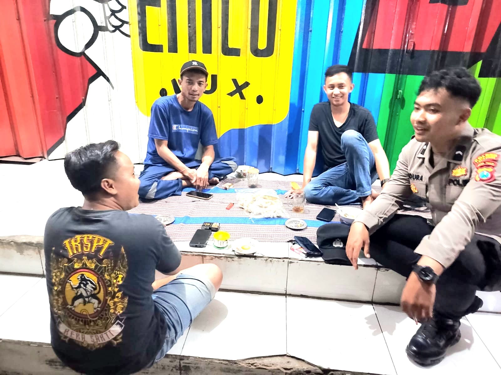 Kegiatan Patroli Rutin yang dilaksanakan oleh Polsek Klakah bertemu dengan warga masyarakat yang sedang berada di warung nasi.