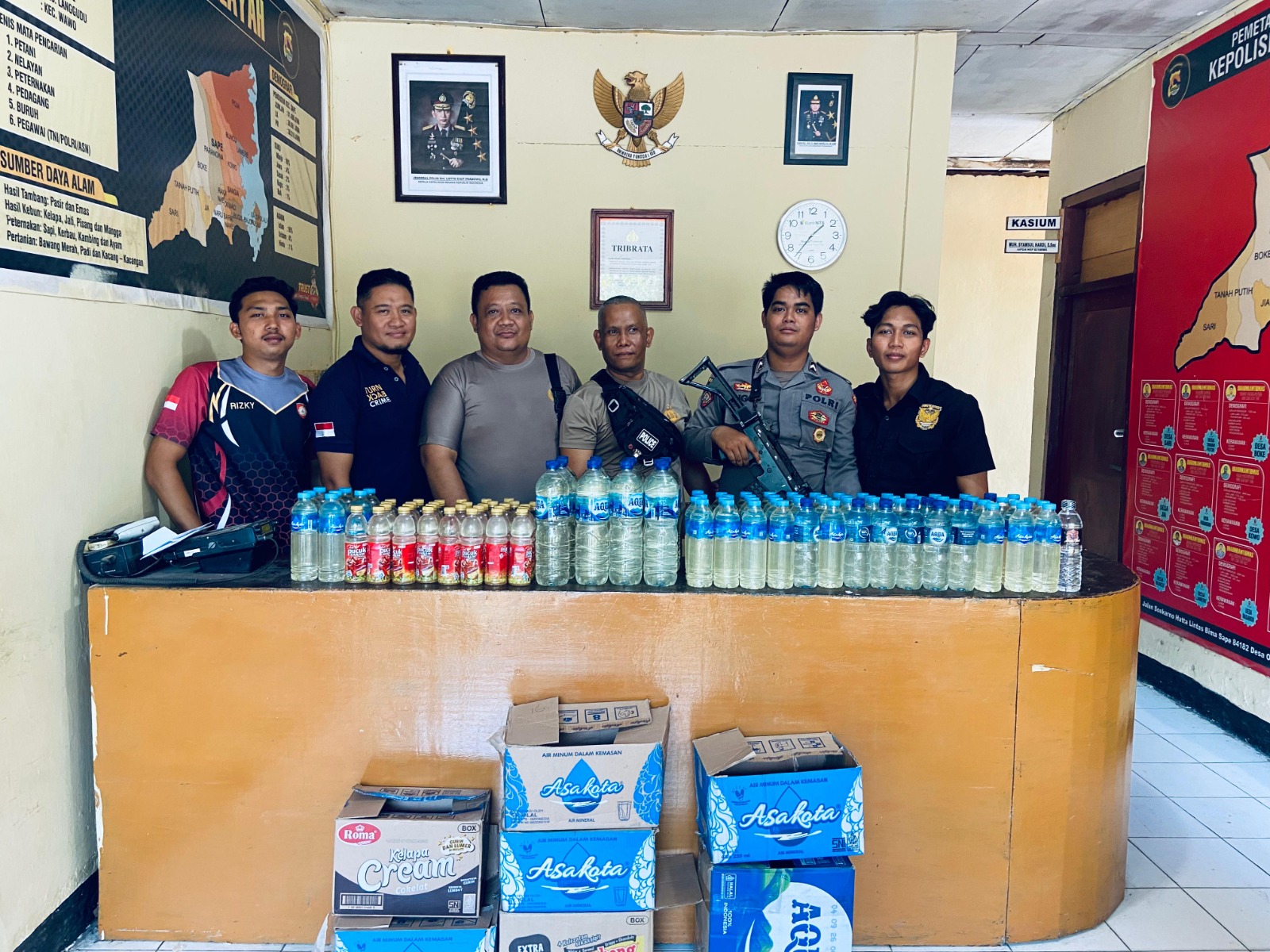 Bima, NTB (13 Oktober 2024) – Armedia.news || Sedikitnya 100 botol minuman keras (Miras) tradisional jenis Sofi berhasil disita dan digagalkan peredarannya oleh Piket Regu 2 Polsek Sape Polres Bima Kota. Ratusan botol miras ini diamankan dalam operasi yang dilakukan di Desa Naru Barat, Kecamatan Sape, Kabupaten Bima, pada Sabtu (12/10) sekitar pukul 14.30 WITA.