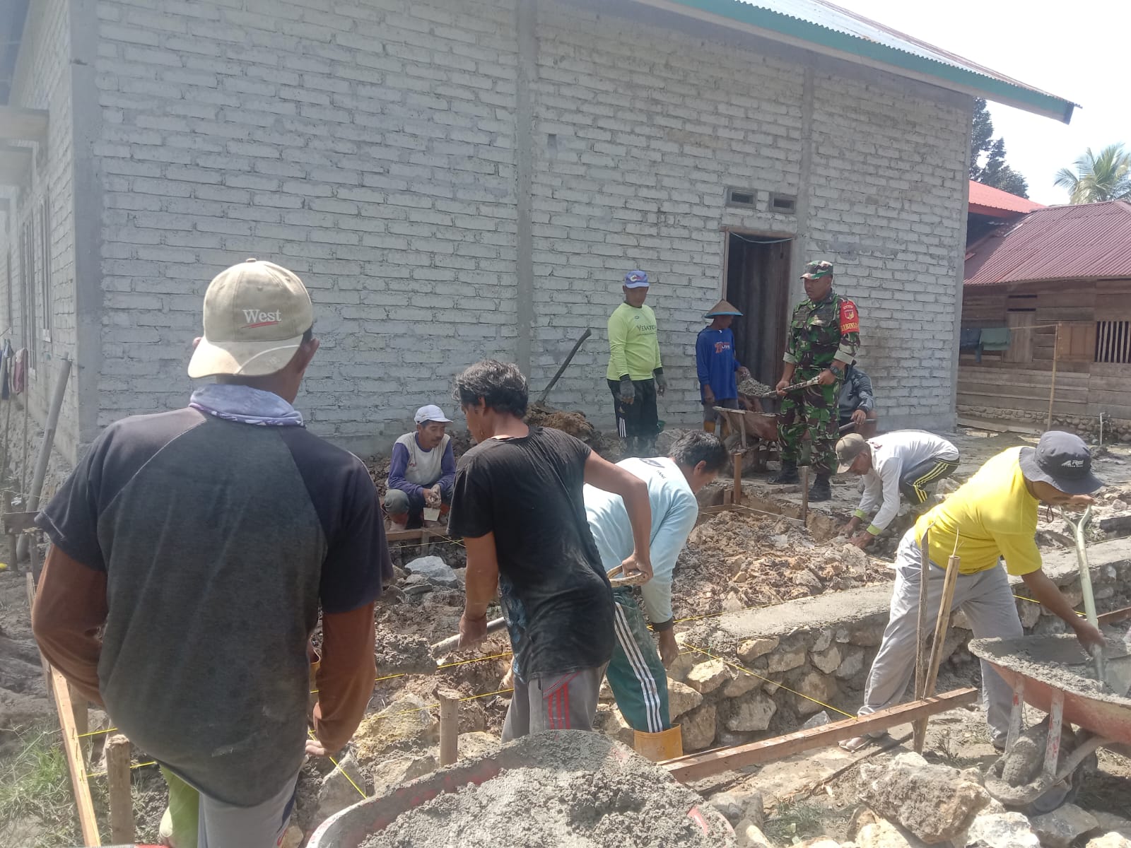 Kodim Poso, – Serka Fahrul, anggota Koramil 1307-11/Pamona Selatan, melaksanakan kegiatan komunikasi sosial (komsos) dan gotong royong dalam pembuatan pondasi rumah milik Bapak Supri, warga Desa Maya Jaya, Kecamatan Pamona Selatan, Kab. Poso. Sabtu, (19/10/2024).