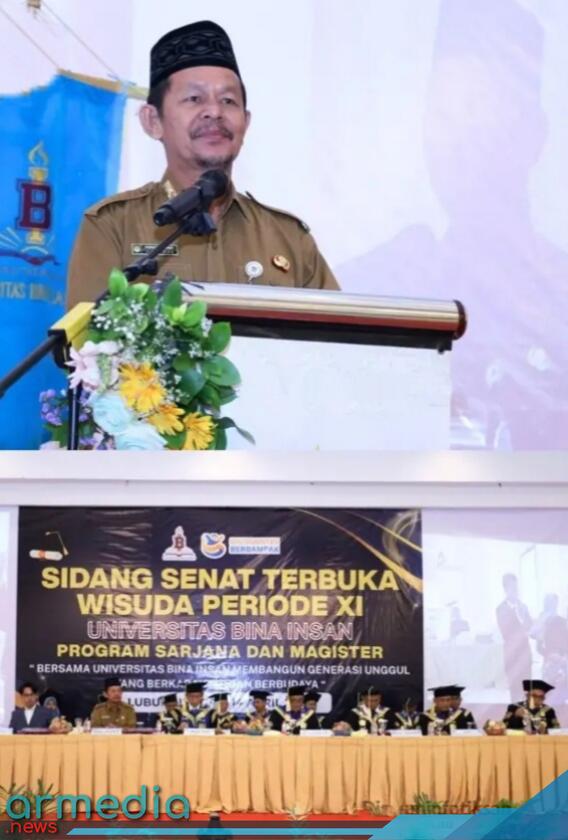 Armedia.news/LUBUK LINGGAU – Wali Kota Lubuk Linggau, H. Rachmat Hidayat yang diwakili Staf Ahli III Bidang Kemasyarakatan dan Sumber Daya Manusia, Asron Erwandi, menghadiri sidang senat terbuka wisuda periode XI sarjana dan magister Universitas Bina Insan. Kegiatan tersebut berlangsung di Ballroom Hotel Dewinda, Kota Lubuk Linggau, Selasa (14/4/2026).