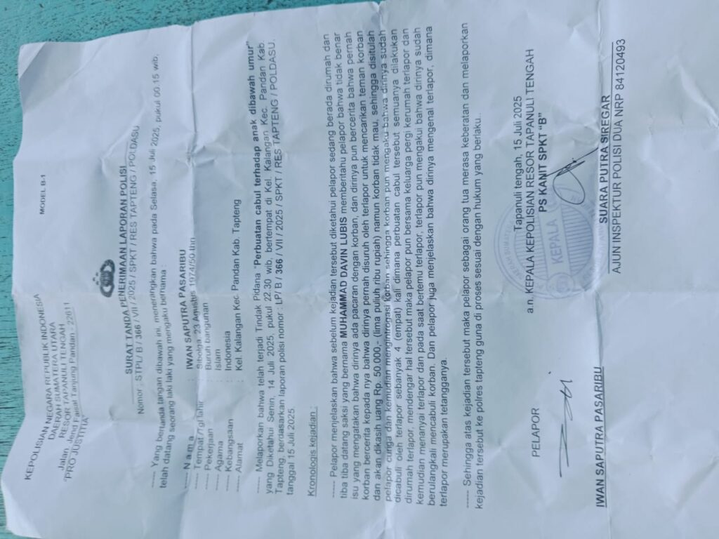 armedia.news | Tapanuli Tengah, Sumatera Utara – Gelombang keprihatinan publik kembali membuncah setelah seorang warga melaporkan kasus dugaan pencabulan terhadap anak di bawah umur yang terjadi di Kelurahan Kalangan, Kecamatan Pandan, Senin malam, 14 Juli 2025.